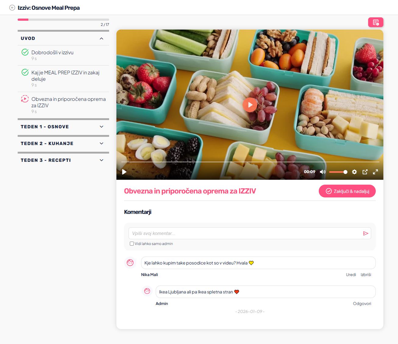 Ko uporabnik kupi ali pridobi dostop do spletnega tečaja, v aplikaciji vidi seznam vseh tečajev, do katerih ima pravico dostopa.