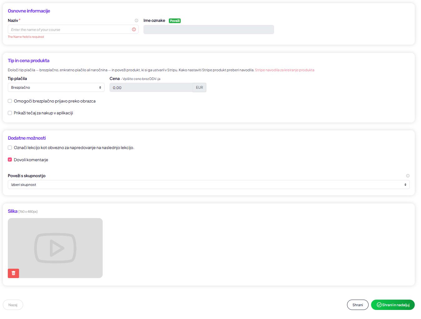 Ko imaš email platformo povezano, lahko vsakemu tečaju ali digitalnemu produktu dodaš ime oznake (tag).