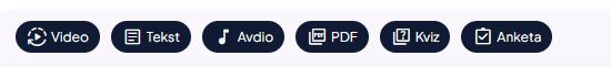 V audienced lahko znotraj vsakega modula ustvariš različne tipe lekcij, glede na vrsto vsebine, ki jo želiš ponuditi uporabnikom.