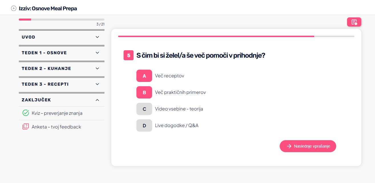 • prilagodiš strukturo glede na cilj tečaja in uporabniško izkušnjo.