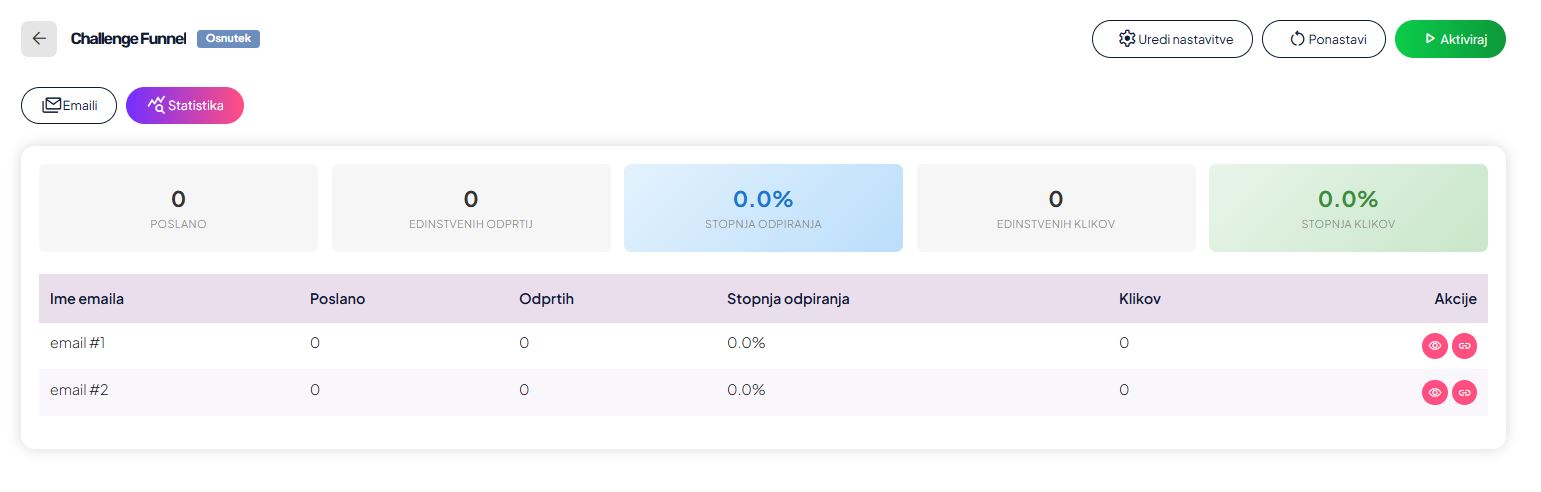 Pred aktivacijo kampanje lahko pošljete testni email.