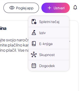 Ko so osnovne nastavitve in plačila urejena, lahko začneš z ustvarjanjem digitalnih produktov, kot so: